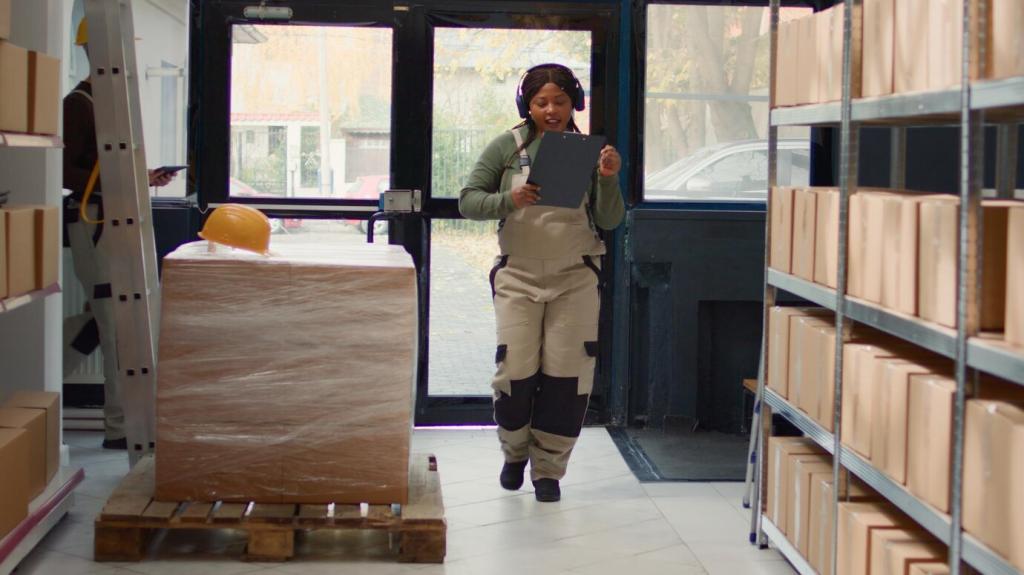 Eine leichtgängige Bibliotheksleiter auf Schiene macht hohe Fächer nutzbar. Achte auf rutschfeste Tritte, stabile Befestigung und Handlauf. Bewahre selten genutzte Dinge ganz oben, Alltägliches griffnah und sicher.